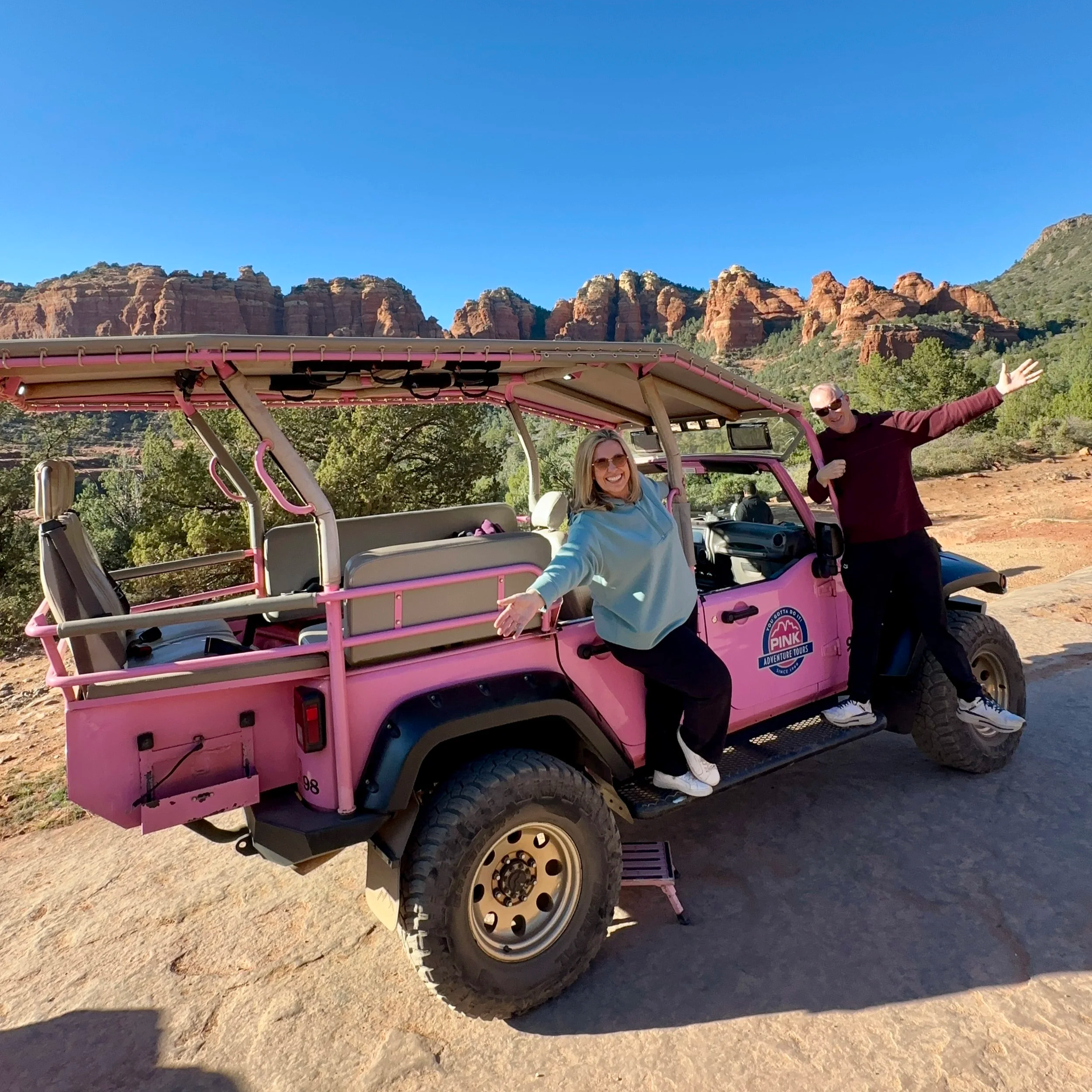 Another highlight of our time in Sedona was taking a thrilling off-road adventure with Pink Jeep Tours on their famous Broken Arrow Trail and Scenic Rim Tour. Riding in the iconic pink Jeep, we climbed over rugged red rock terrain that you would never reach in a regular vehicle. The guide shared fascinating information about Sedona’s geology and history while navigating steep slickrock climbs and dramatic drop-offs, making the ride both exciting and unforgettable. Along the way, we stopped at several incredible viewpoints where the sweeping red rock landscape stretched out in every direction. It was such a fun way to explore Sedona’s backcountry, and I highly recommend it!