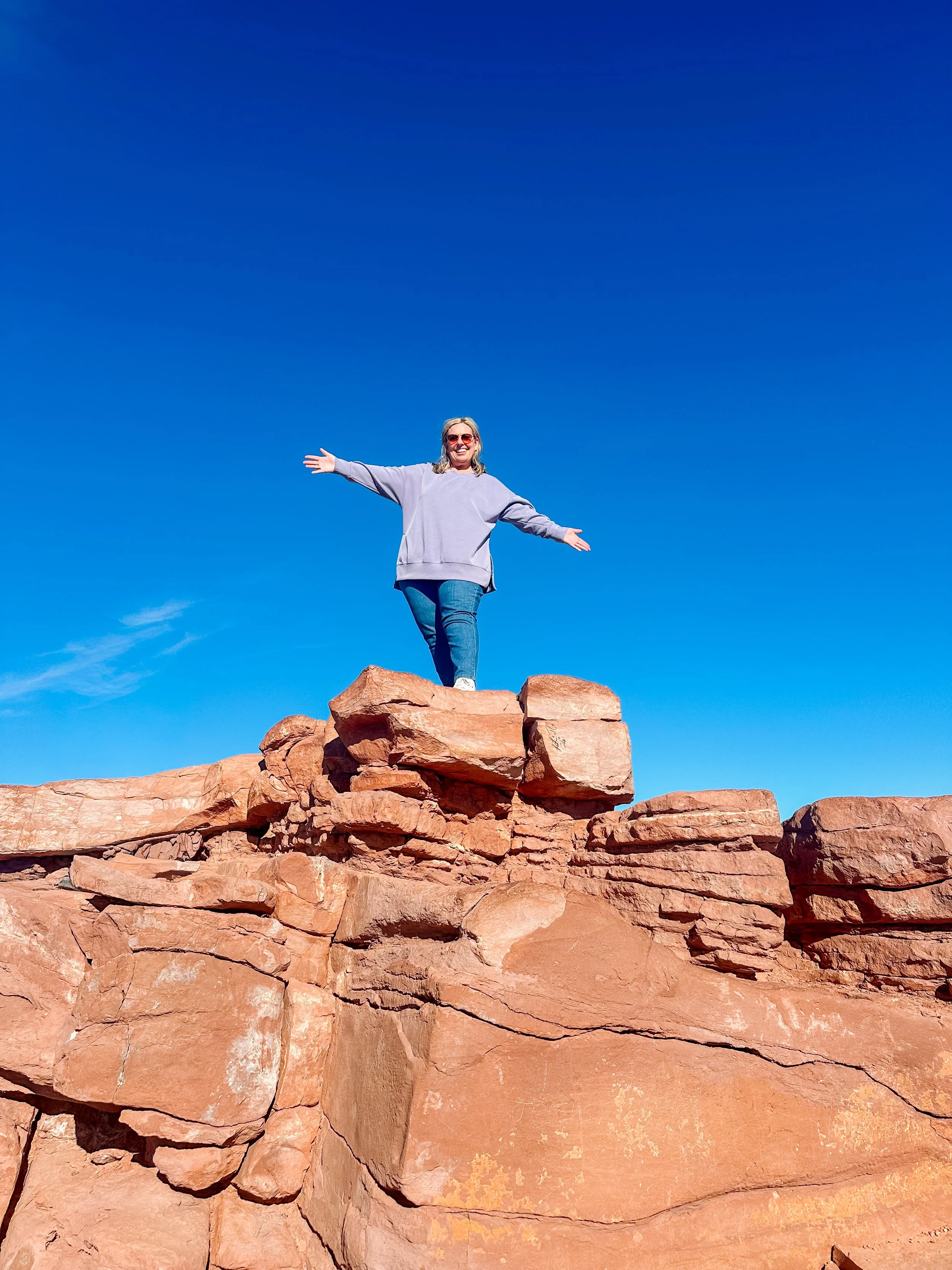 One morning, we headed up to the Mesa Grill, located right next to the Sedona airport. As we enjoyed breakfast, we watched small planes take off and land just outside the windows — such a fun and unexpected experience. After breakfast, we stepped outside and walked over to the nearby Sedona Airport Scenic Overlook, where we were greeted with sweeping views of Sedona’s famous red rock landscape stretching out in every direction.