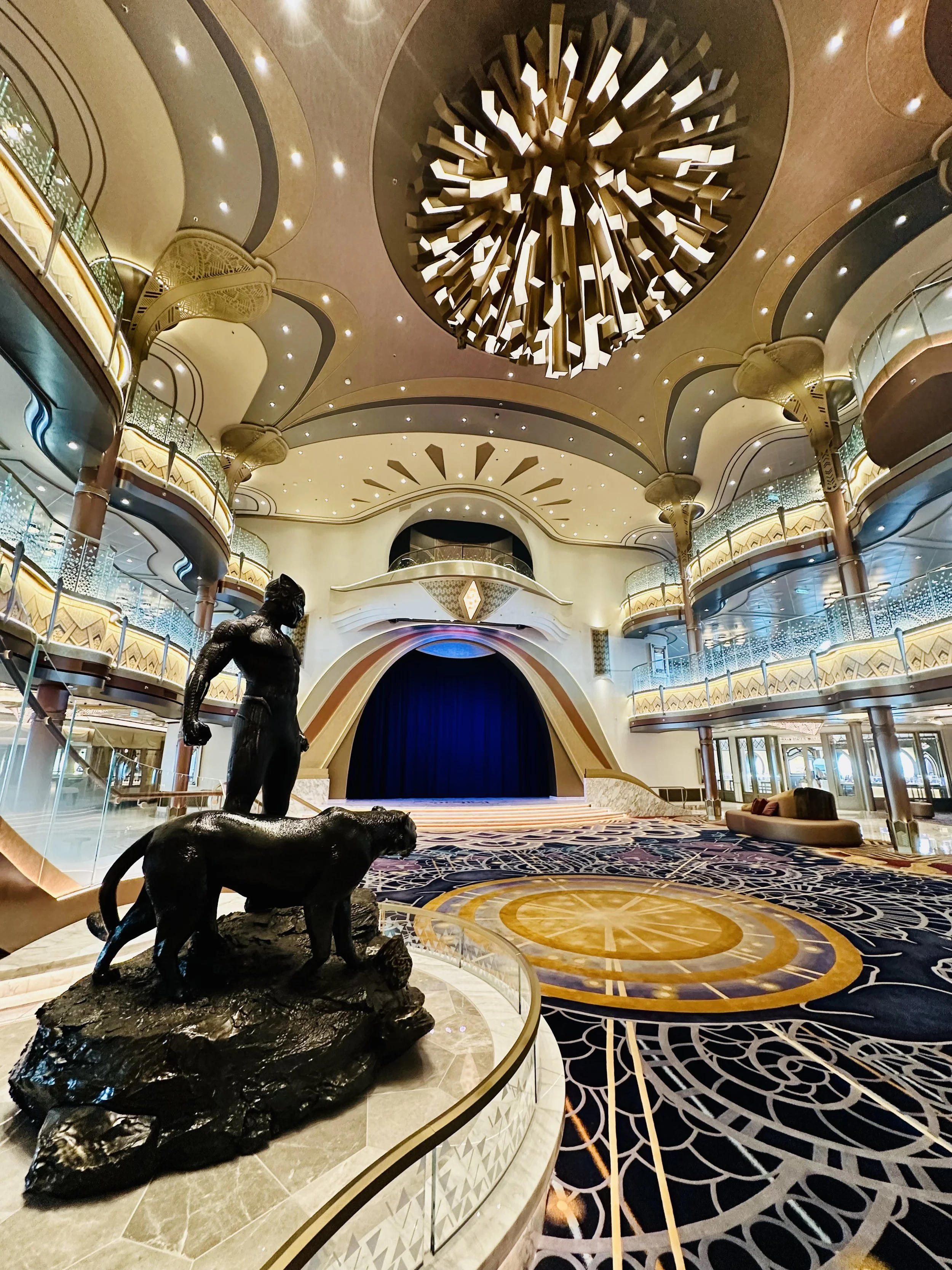 We took a stroll around parts of the ship. It’s vast, with 15 decks and over 1,200 staterooms. What sets it apart from any other cruise ship, even its Disney siblings, is its bold “Heroes and Villains” theme. Every corner of the ship celebrates the dynamic duality of Disney stories: the clash of light and dark, bravery and mischief. Throughout the ship, you’ll find nods to a wide array of beloved Disney, Pixar, and Marvel characters - from Hercules, Spider-Man, and Black Panther to Cruella deVil, Loki, and Maleficent.